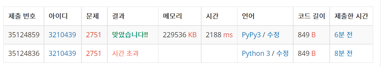 위 문제를 pypy3 을 활용해서 해결하면 되는데 python3은 해결되지않는다.