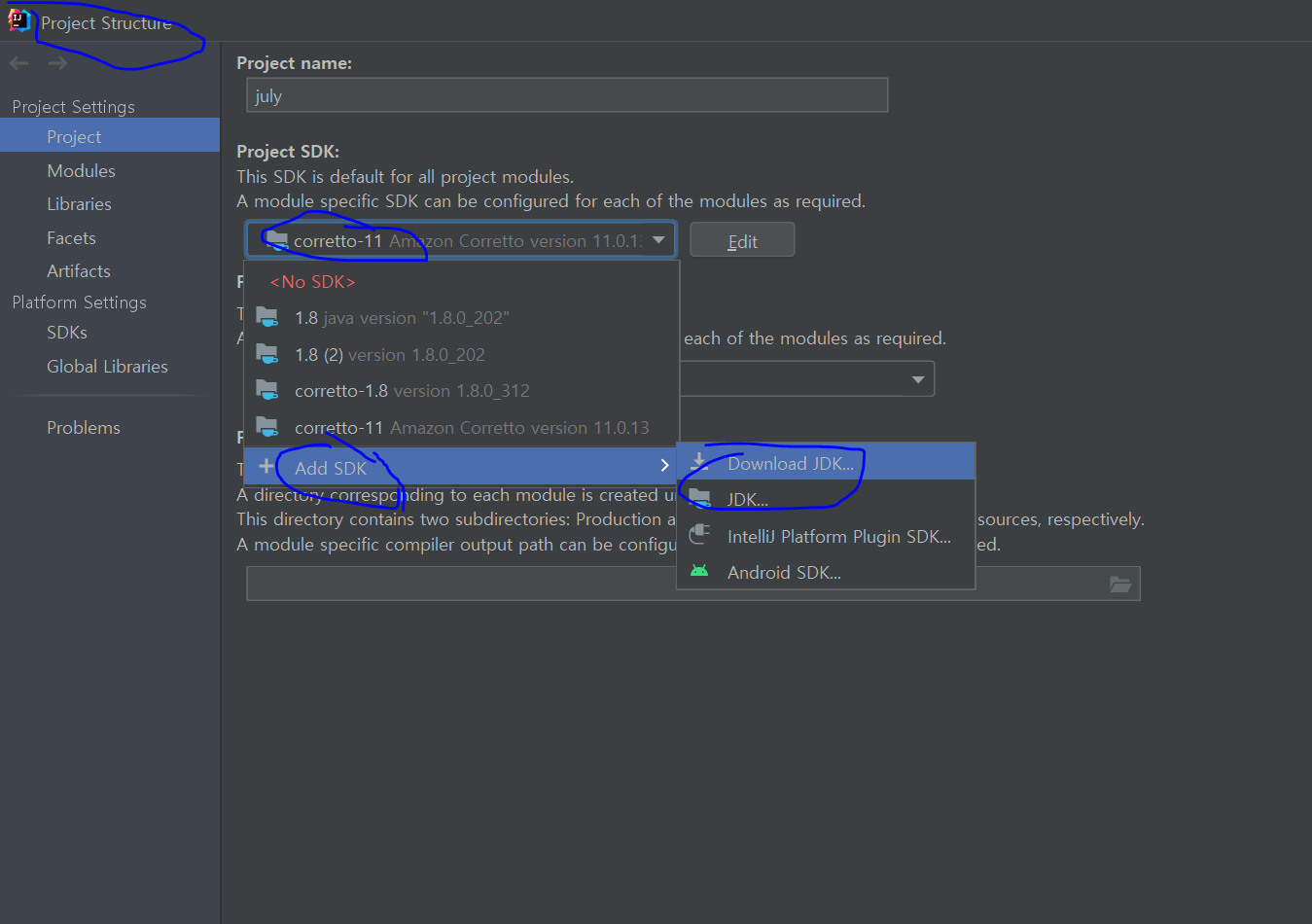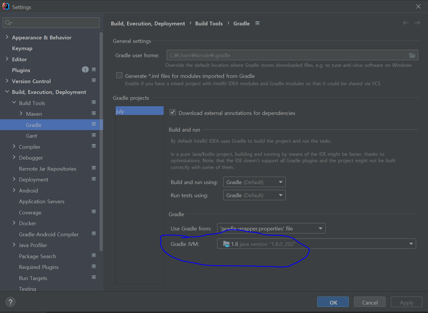 Gradle에서 Gradle JVM 버전을 11로 맞춘다.