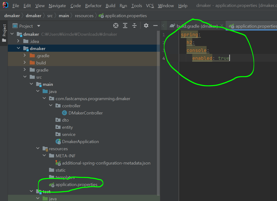 강의에서는 파일 이름이 application.yml 이였지만 최근에는 application.properties로 바뀌면서 뭔가 바뀐 듯 하다.