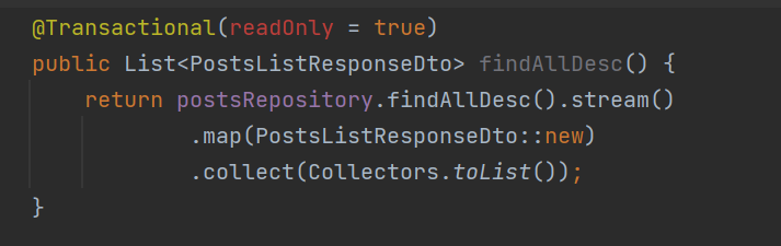 javax의 Transactional를 사용해서라고한다. javax는 readOnly 기능을 지원하지 않는 것 같다.