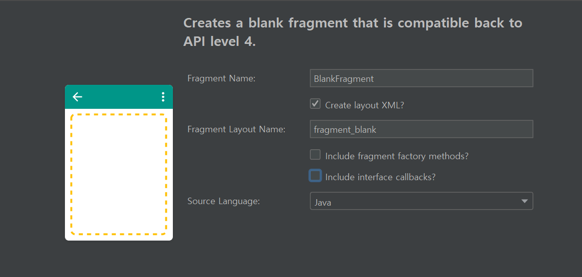 블랭크 프래그먼트 3개를 방금 생성한 패키지에 생성한다