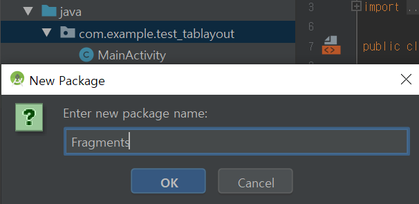 프래그먼트를 보관할 패키지를 자바 폴더에 있는 com.example. 프로젝트명 파일에 생성한다