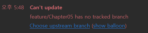 해당 오류를 해결하기 위해서 Choose upstream branch를 선택하고 branch를 master로 하니 다행이 복구가 되었다.