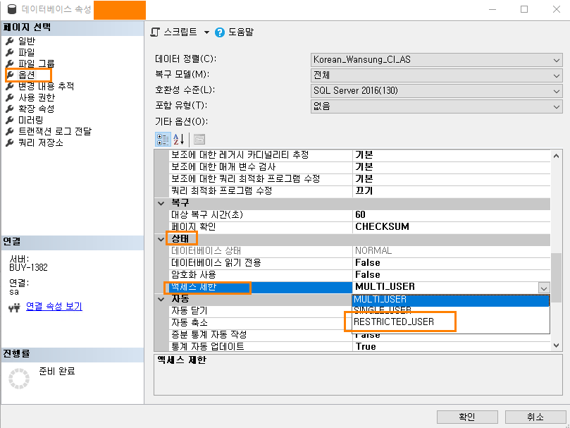 데이터베이스를 복원하기 전에는 다중 사용을 허용해서는 안된다.