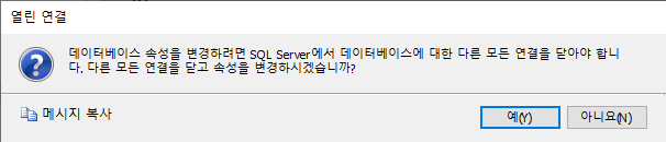 '데이터베이스가 사용 중이여서 배타적으로 엑세스할 수 없습니다.'