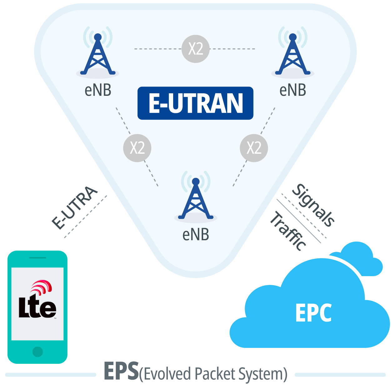 LTE 네트워크는 무선 접속망(E-UTRAN) 관련 기술을 다루는 LTE 부분과 Core 망 관련 기술을 다루는 EPC 부분으로 나누어지고 LTE와 EPC를 통합하여 EPS라 일컫는다.