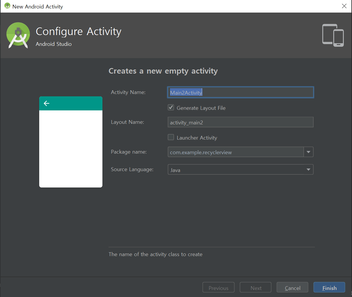 empty 액티비티 하나를 생성합니다.