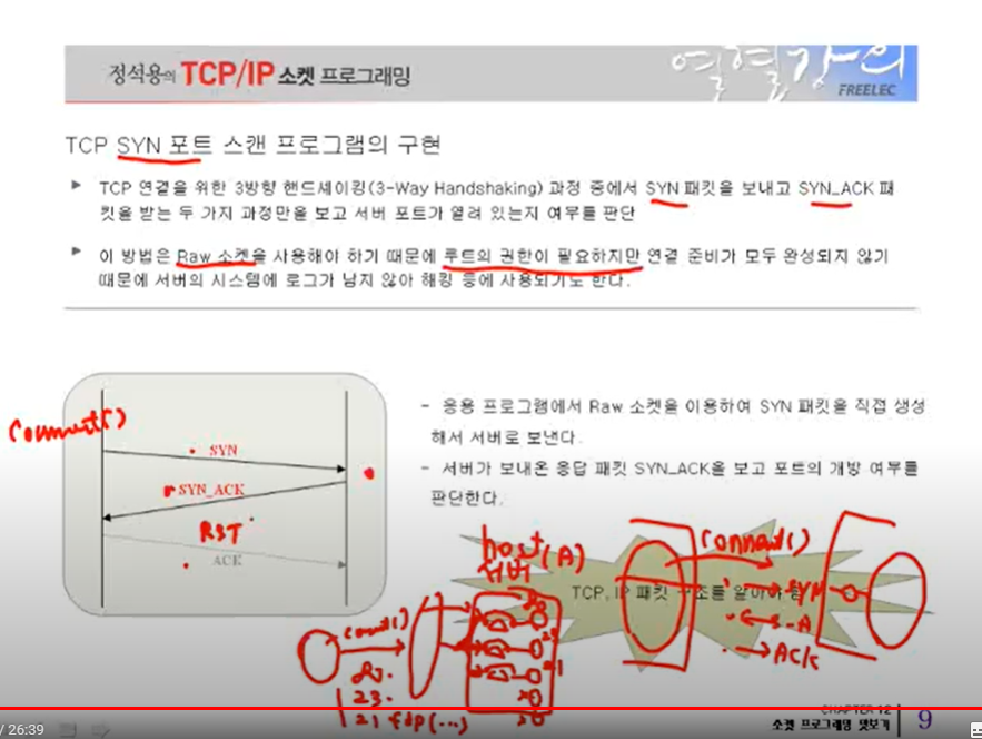 SYN 메시지를 주고밭는 이유는 서버 포트가 열려 있는지 판단하기 위해서이다.