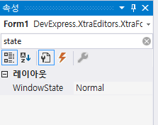 속성창에 state라 검색하면 WindowState가 검색된다 Normal 상태를 Maximized 상태로 변경하면 된다.