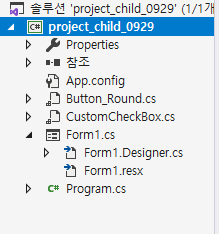 아래에 보면 속성 첫번째에 Form1 이 설정되어있다.