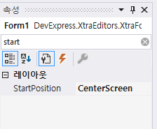 그리고 Start라 치면 StartPosition이 나오게 된다. 이를 통해서 가운데에서 윈폼이 생성 되게끔 만들 수 있다.