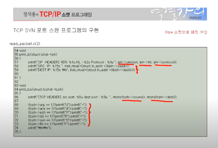 44~45번째 줄을 보면 tcp 헤더와 IP 헤더를 출력한다.
