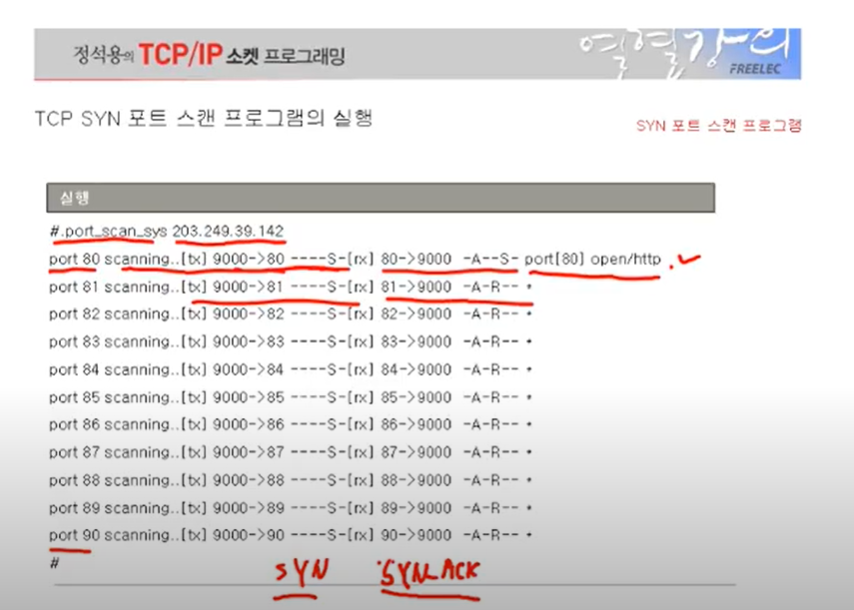 위 정보는 SYN 패킷을직접 만들고 조정하고 SYN_ACK 패킷을 찾아내고 조사해서 얻은 결과라 할 수 있다.