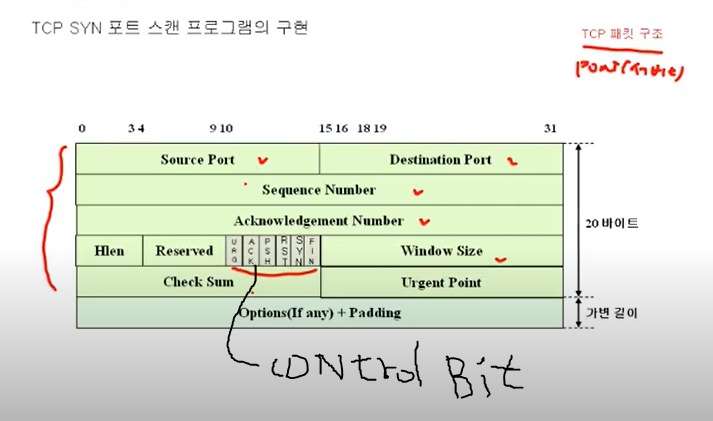 [TCP HEADER] src port, dest port, 컨트롤 비트