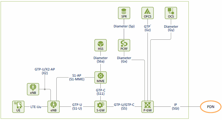 P-GW(Packet Data Network Gateway) : UE를 외부 PDN망과 연결해주며 패킷 filtering을 제공한다. UE에게 IP 주소를 할당하고 3GPP와 non-3GPP 간 핸드 오버시 mobility anchoring point로 동작한다. PCRF로부터 PCC 규칙을 수신하여 적용하며 (Policy Enforcement) UE 당 과금 기능을 제공한다. 주요 기능은 다음과 같다.