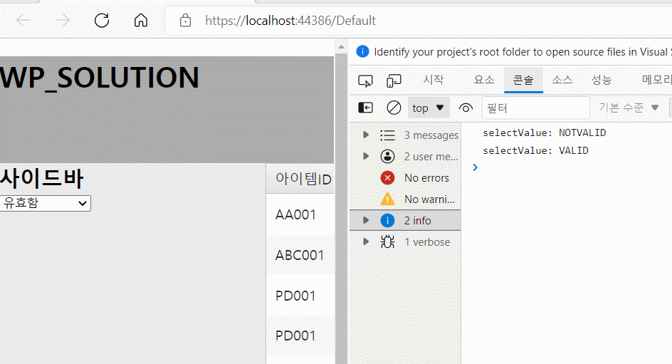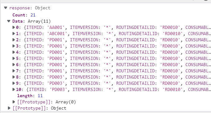 위와 같이 ITEMID와, QTY 등의 값은 response의 data에 array형식으로 들어가 있음으로 response.Data 와 같은 형식으로 값에 접근할 수 있습니다.
