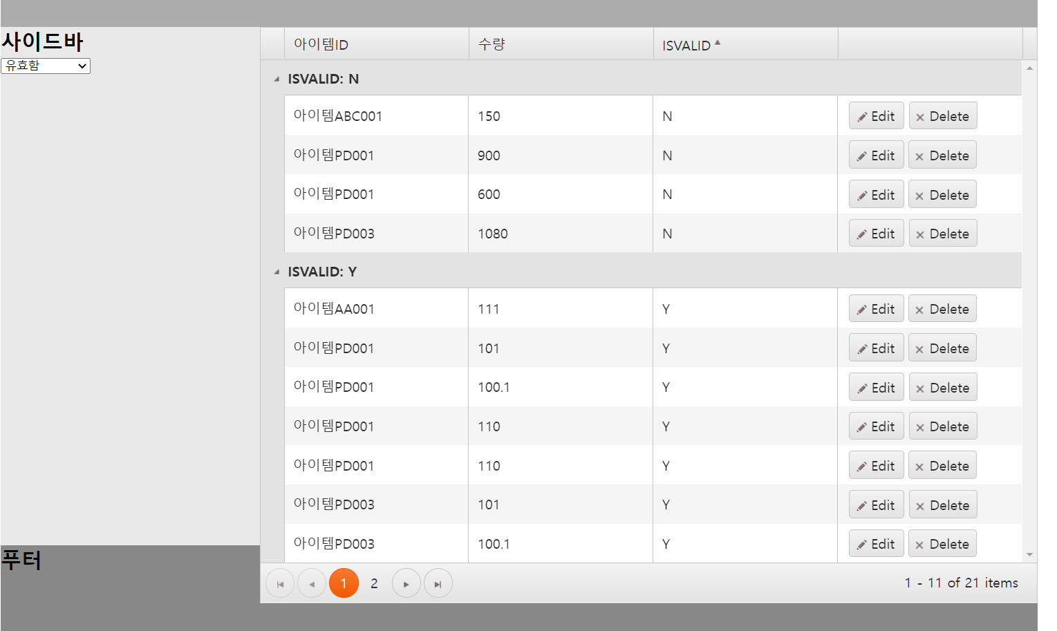 해당 설정이 끝나면 위 이미지처럼 ISVALID로 그룹화된 테이블을 확인할 수 있습니다.