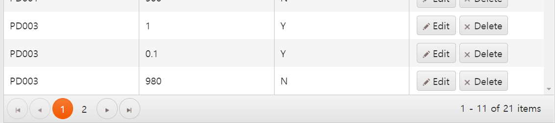 스키마에 total 속성을 total: "Count"와 같이 지정한 경우 아이템의 인덱스와 총계수를 페이지 우측 하단에 나타냅니다.
