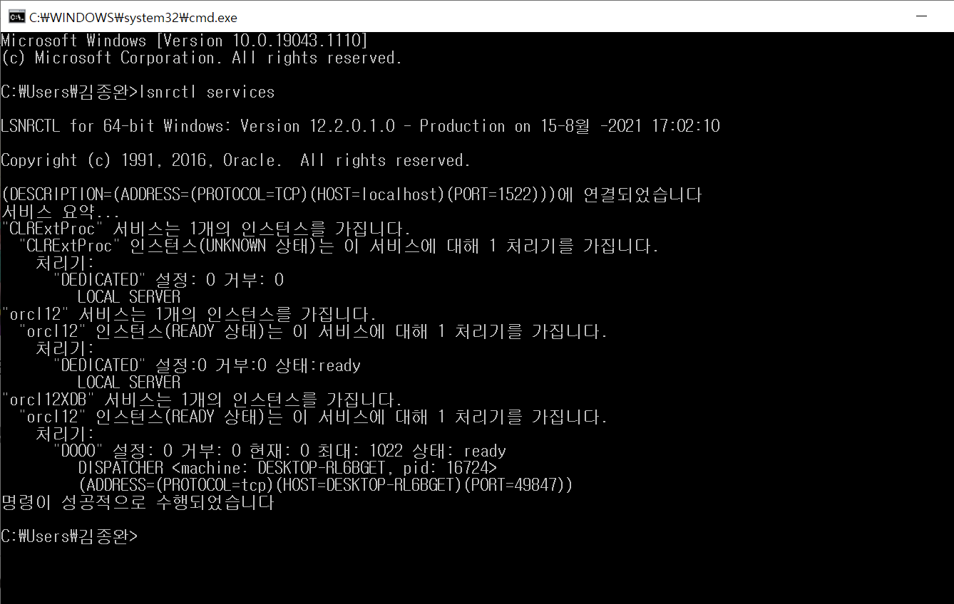 DBEAVER를 사용하기 위해 오라클과 연결을 진행하였다. 하지만 오류가 계속나서 명령어 창에서 lsnrctl services 명령어를 통해서 확인해보니 포트번호가 1522였음을 확인하였다. 오류의 원인은 포트번호를 1521을 사용하였다는 점이 문제였던 것이다.